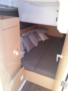Even we are in 35 feet, the feeling is the same as on the Oceanis 38! It’s very beautiful! We keep the feeling of space, design and lighting. Everything is here in only 35 feet. The configuration is the same: Cruising, Weekender or Daily, 3 or 2 cabins and one toilet.