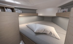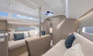 The Oceanis 30.1 has a hull designed by Finot-Conq and meets the performance and easy sailing challenge of the recent generation inaugurated in 2017 with the 51.1. She boasts a slender stem widening in a hard chine above the waterline, optimized weight, stiff canvas, and a square-top mainsail as standard, giving her everything she needs to perform well in all points of sailing. Thrill seekers and new sailors from the world of dinghy sailing will love the unusual tiller on twin rudders. Sailors who prefer comfort will choose the twin steering wheels. For beginners or for shorthanded sailing, the self-tailing jib and the single winch will be perfect. For high performance, Oceanis 30.1 can be equipped with an large overlapping genoa, a furling code zero or an asymmetric spinnaker (stemhead built into the hull design).