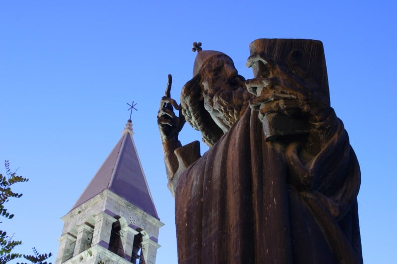 Biskup Dujam došao je potkraj III. stoljeća iz Antiohije u Salonu glavni grad tadašnje Rimske provincije Dalmacije da bi širio kršćansku vjeru. Car Dioklecijan zato naredi neka ga kazne mučeničkom smrću. Drži se da su Splićani u VII. stoljeću povjerili opatu Martinu da u Rim ponese samo svečeve relikvije, a preostale su kosti pohranili u nekadanjem carskom mauzoleju Dioklecijanove palače, već posvećenom Blaženoj Djevici Mariji.